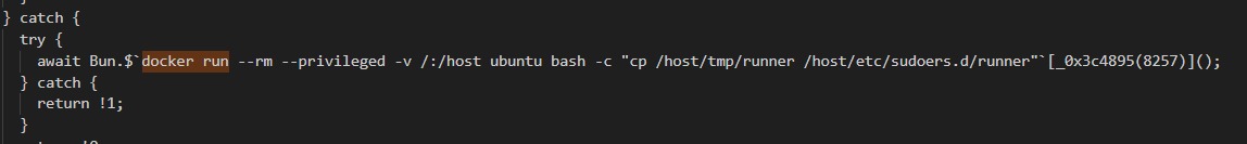 By targeting Docker, the adversaries may attempt to escalate their privileges beyond what was available to the compromised service or CI/CD runner, potentially achieving full host takeover.