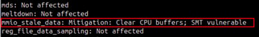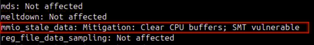 Note: For all vulnerabilities except mmio_stale_data (explained at the end of this section), the output should not show “Vulnerable.”