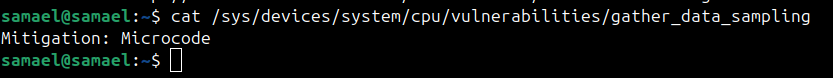 Run : cat/sys/devices/system/cpu/vulnerabilities/gather_data_sampling