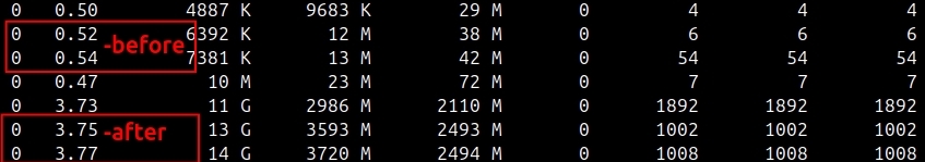 While PCM runs, open a second terminal and capture top output to compare OS-level metrics with hardware metrics: