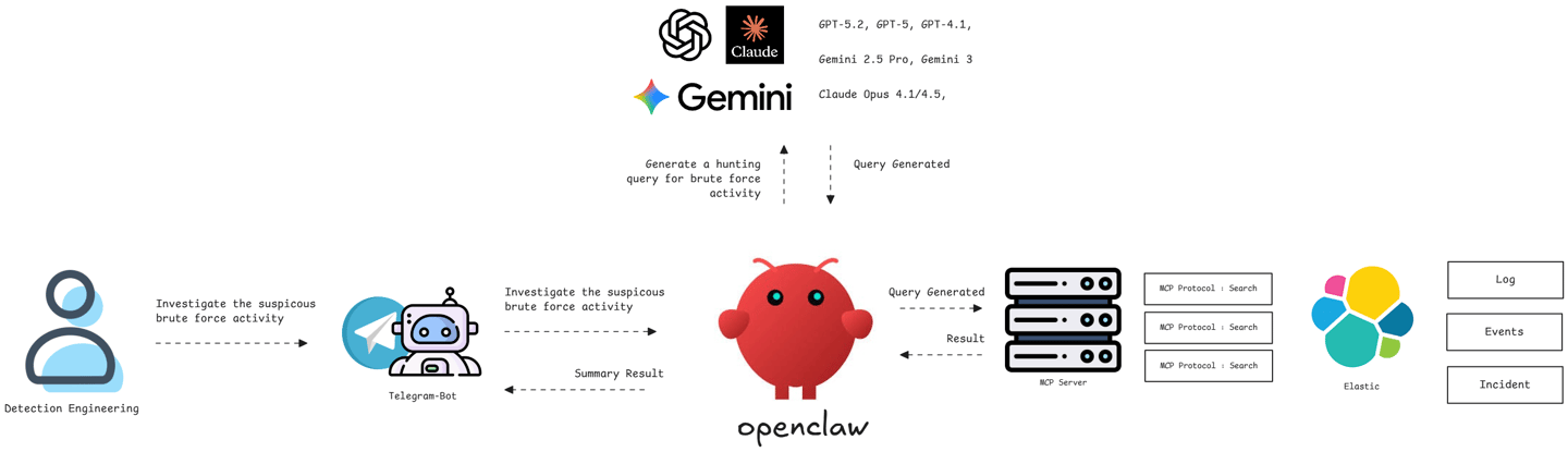 In the context of detection engineering, OpenClaw can be integrated as an AI-driven hunting and investigation assistant that brings security operations directly to the analyst’s fingertips. Imagine initiating a threat hunt or an incident investigation from your mobile device via Telegram or WhatsApp without needing to log into multiple dashboards or SIEM consoles.