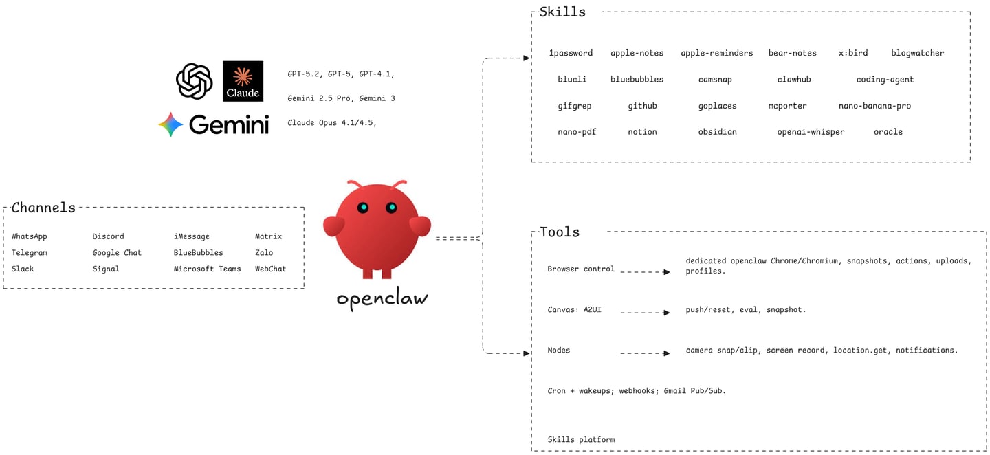 Powered by LLMs, the assistant interprets user intent, reasons through complex requests, and dynamically enhances its capabilities to meet specific requirements. Beyond conversation, OpenClaw can securely connect to and interact with various services, tools, and platforms to gather information, trigger workflows, and perform real-world operations. This combination of multi-channel interaction, intelligent reasoning, and deep service integration enables OpenClaw to act as a truly personalized, action-oriented AI assistant rather than just a conversational interface.