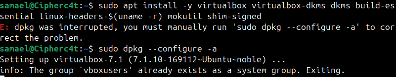 sudo apt install -y virtualbox virtualbox-dkms dkms build-essential linux-headers-$(uname -r) mokutil shim-signed