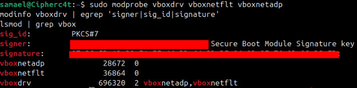 modinfo vboxdrv | egrep 'signer|sig_id|signature'