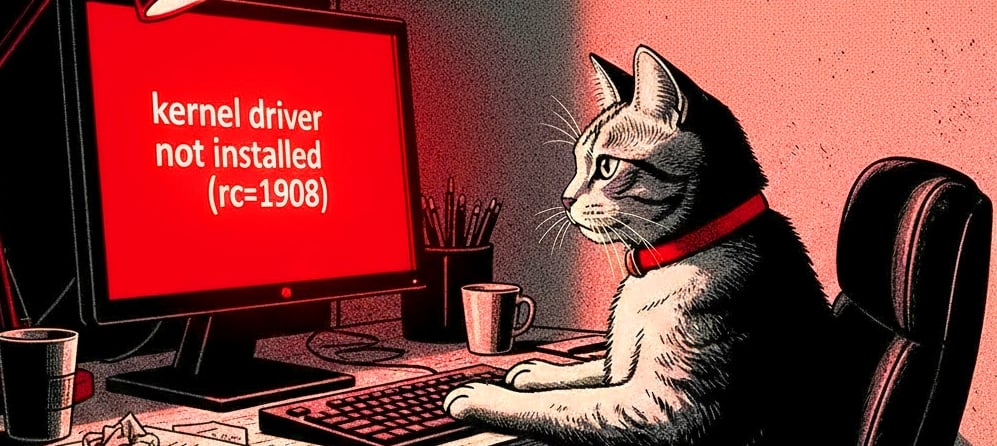 You may also see the same Kernel driver not installed (rc=1908) after a reboot or after kernel updates.