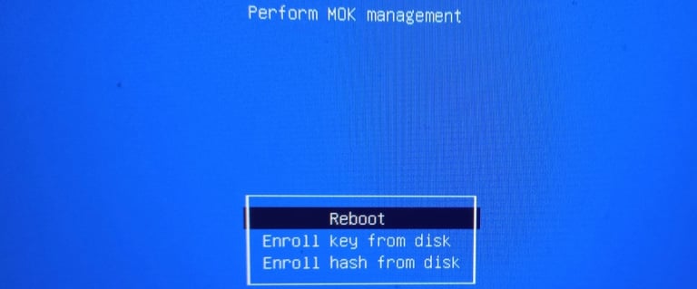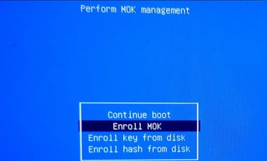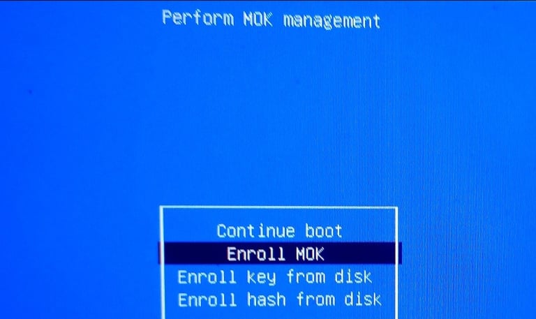 You’ll see a blue or gray UEFI menu labeled ‘MOK Management’ or ‘Enroll MOK’.