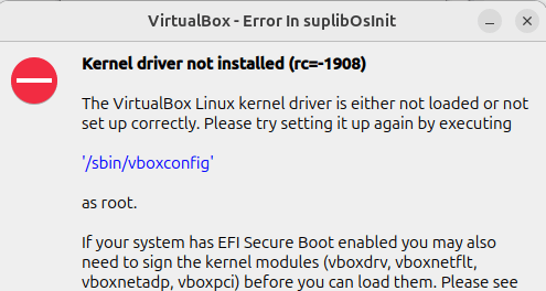 Run a VM with Secure Boot Enabled on Linux (kernel driver not installed (rc=1908)