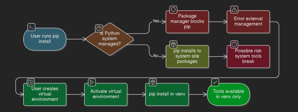 That’s why modern Ubuntu shows the “external-managed-environment” warning.